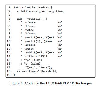 The FLUSH+RELOAD technique exploits the lack of restrictions on the use of the clflush instruction.