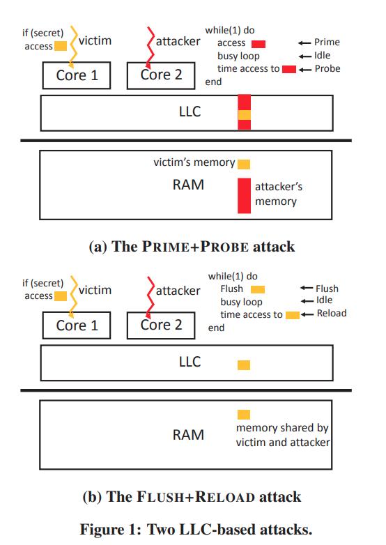 Specifically, the VMM first allocates a large buffer (e.g., the same size as the LLC) and cleans the LLC by traversing the large buffer. Then the Vmm uses the PMU to measure the number of LLC misses when randomly traversing a secure page.