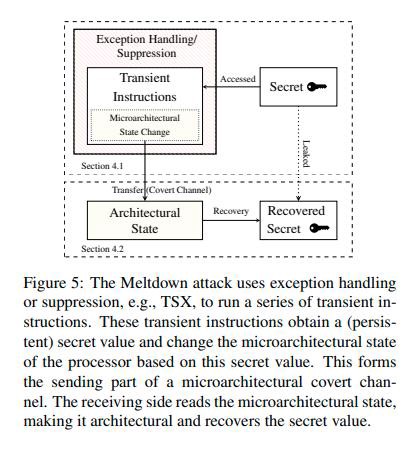 The second building block of Meltdown is the transfer of the microarchitectural state, which was changed by the transient instruction sequence, into an architectural state.